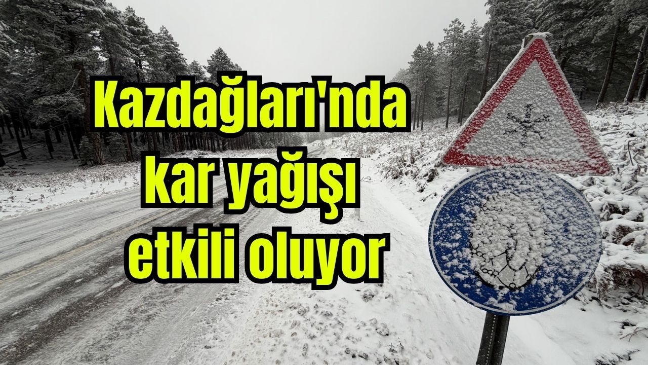 Edinilen bilgiye göre, Kazdağları'nda bulunan Hanlar ve Deve Boynu mevkilerinde kar yağışı nedeniyle buzlanan yolda sürücüler güçlükle ilerliyor.