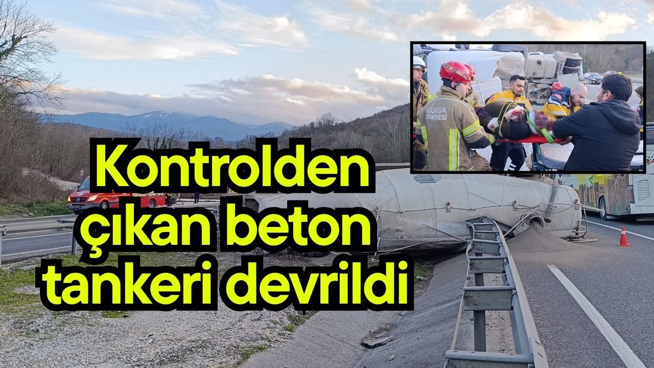 Kaza, saat 17.30 sıralarında Bursa-Ankara karayolu üzeri kırsal Yeniköy mahallesi mevkiinde meydana geldi. Bozüyük'ten İnegöl'e seyir halinde olan Mehmet G. (65) yönetimindeki 16 AGK 90 plakalı beton tankeri, virajda sürücüsünün kontrolünden çıkarak devrildi. Tanker kısmı refüje fırlarken, çekici kısmı ise yolun diğer kısmına devrildi. Sürücü araçta sıkışarak ağır yaralandı. Kaza yerine 112, jandarma, trafik ekipleri ve itfaiye arama kurtarma ekipleri sevk edildi. Araçta sıkışan sürücü ekiplerce çıkarıldı. Yaralı, ambulansla İnegöl Devlet Hastanesine kaldırıldı. Yaralının sağlık durumunun ciddiyetini koruduğu öğrenildi.