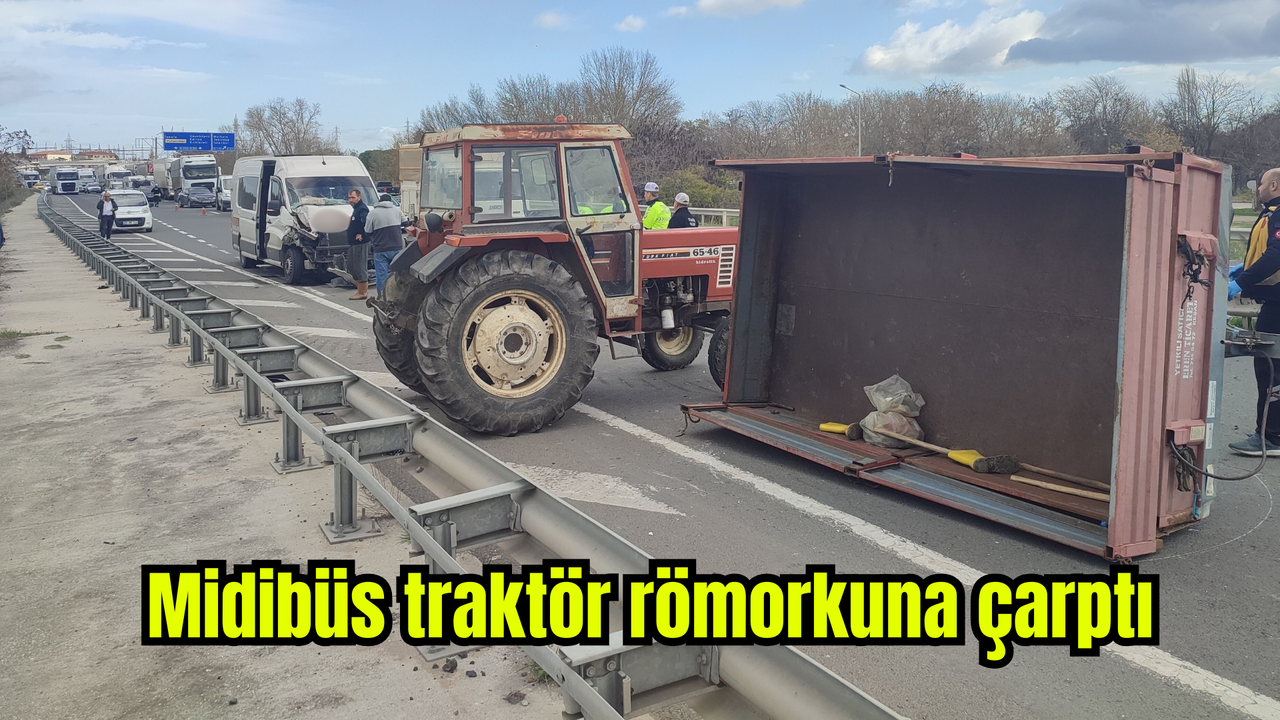 Alınan bilgiye göre, Tekirdağ'dan Gelibolu yönüne giden M.Ç. yönetimindeki yolcu midibüsü, S.Ü. yönetimindeki 22 FP 243 plakalı traktöre bağlı römorka arkadan çarptı. Çarpmanın etkisiyle römork yan yatarken, midibüsteki 1 yolcu yaralandı. İhbar üzerine kaza yerine sağlık ve polis ekipleri sevk edildi. Yaralı, ambulansla kaldırıldığı Keşan Devlet Hastanesi'nde tedavi altına alındı.