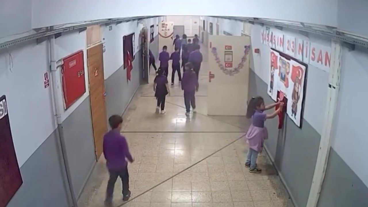 O anlar okulun güvenlik kameraları tarafından saniye saniye kaydedilirken, minik yüreklerin sergilediği duyarlılık izleyenlerin takdirini topladı.