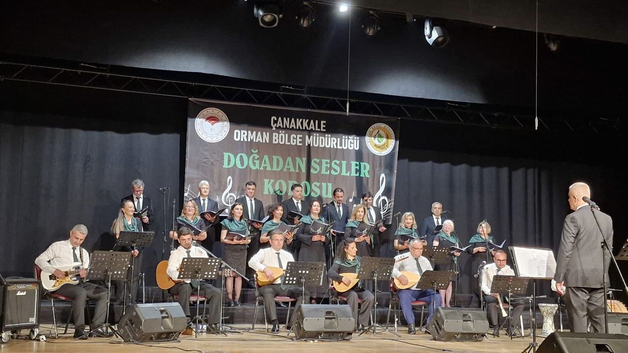 Çalışmalarını Çanakkale Orman Bölge müdür Yardımcısı Halil Kısacık önderliğinde gerçekleştiren Çanakkale Orman Bölge Müdürlüğü personeli, bu kez müzik sahnesinde Çanakkalelilerle buluştu. Kurum personellerinden oluşan “Doğadan Sesler” Türk Halk Müziği Korosu, 3 Nisan 2026 Cuma günü saat 19.30’da Çanakkale Belediyesi Kültür Merkezi Salonu’nda müzikseverlerin karşısına çıktı. İki bölümden oluşan konser programı, salonu dolduran misafirlere Anadolu'nun zengin kültürel tınılarını sundu.