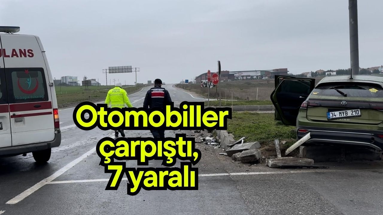 Edirne'nin Kırklareli Kavşağı'nda H.S.'nin kullandığı 35 AU 8902 plakalı otomobil ile E.G. idaresindeki 34 MYB 210 plakalı otomobil çarpıştı. Kazada yaralanan 7 kişi ambulanslarla Trakya Üniversitesi Tıp Fakültesi Hastanesi Acil Servisine kaldırıldı. Jandarma, kazayla ilgili inceleme başlattı.