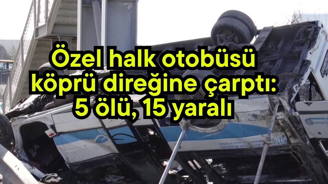Ankara’nın Kahramankazan ilçesinde seyir halindeki özel halk otobüsü köprü direğine çarptı. Kazada 5 kişi öldü, 15 kişi yaralandı.