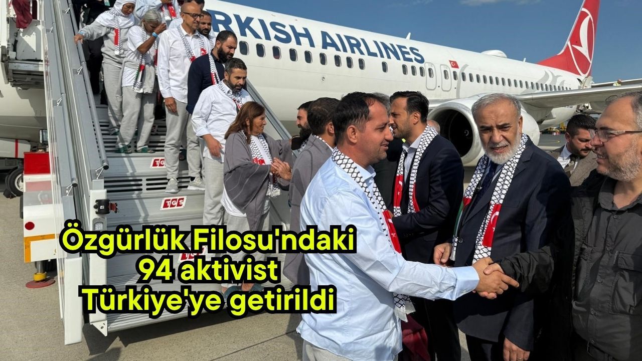 İsrail tarafından uluslararası sularda el konulan Özgürlük Filosu'na ait teknelerde bulunan 18'i Türk 76'sı yabancı olmak üzere toplam 94 aktivist Türkiye'ye getirildi. Aktivistleri taşıyan Türk Hava Yolları'na ait TK6921 sefer sayılı özel uçak, Ürdün'den saat 12.00'de hareket etti ve saat 14.30 sıralarında İstanbul Havalimanı'na iniş yaptı. Aktivistleri havalimanında Dışişleri Bakan Yardımcısı Musa Kulaklıkaya, STK temsilcileri, yakınları ve çok sayıda Filistin destekçisi vatandaş çiçek ve bayraklarla karşıladı. Aileleri ve yakınları ile hasret giderip duygu dolu anlar yaşayan Türk aktivistler, havalimanındaki işlemlerinin tamamlanmasının ardından sağlık muayenelerinin yapılması için kendilerine tahsis edilen araçlarla polis korteji eşliğinde Yenibosna'daki Adli Tıp Kurumu'na götürülecekleri öğrenildi. Aktivistlerin buradaki sağlık muayenelerinin tamamlanmasından sonra ise emniyette ifade vermeleri bekleniyor.
