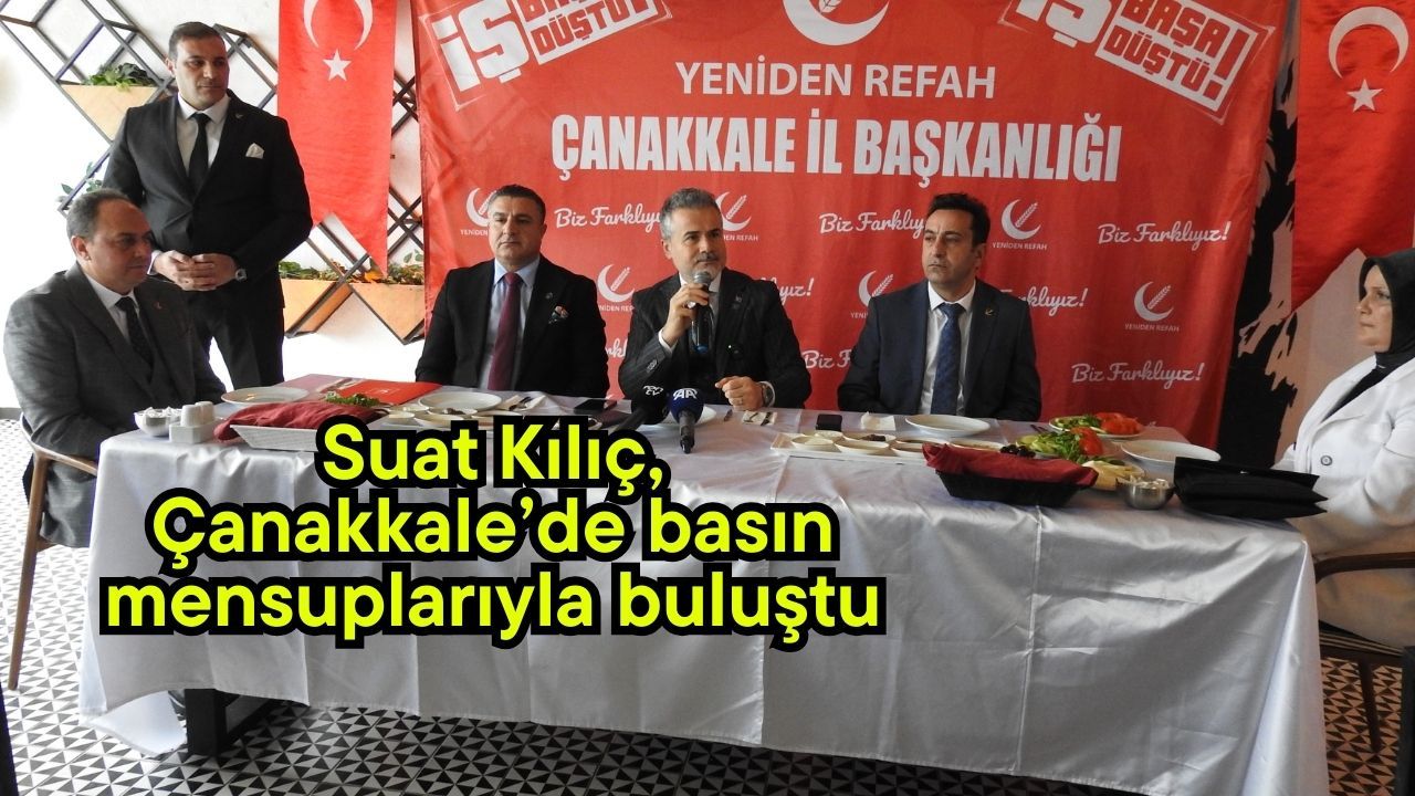 Yeniden Refah Partisi Genel Başkan Yardımcısı ve Siyasi İşler Başkanı Suat Kılıç, partisinin İl Divan Kurulu Toplantısı’na katılmak ve bir dizi temaslarda bulunmak üzere geldiği Çanakkale’de, ulusal ve yerel basın mensuplarıyla bir araya geldi. Lodos Bar’da düzenlenen toplantıya Yeniden Refah Partisi Çanakkale İl Başkanı Mehmet Yüzbaşı ile partililer de katıldı.