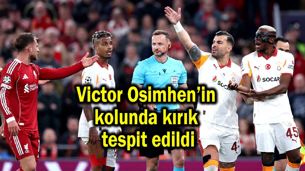 Galatasaray Spor Kulübünden yapılan açıklamada, “Şampiyonlar Ligi Son 16 Turu rövanşında Liverpool ile deplasmanda oynadığımız karşılaşmanın ilk yarısında koluna darbe alan ve ilk yarıyı tamamlayan futbolcumuz Victor Osimhen, devre arasında yapılan kontroller sonrasında kolunda kırık olma riskinden ötürü karşılaşmanın ikinci yarısında oynatılmadı. Maç sonrasında sağlık ekibimizin denetiminde hastanede yapılan kontrolde futbolcumuzun sağ ön kolunda kırık olduğu tespit edildi ve alçı yapıldı. Yapılacak değerlendirmeler sonrasında ameliyat konusundaki karar önümüzdeki günlerde verilecektir.
