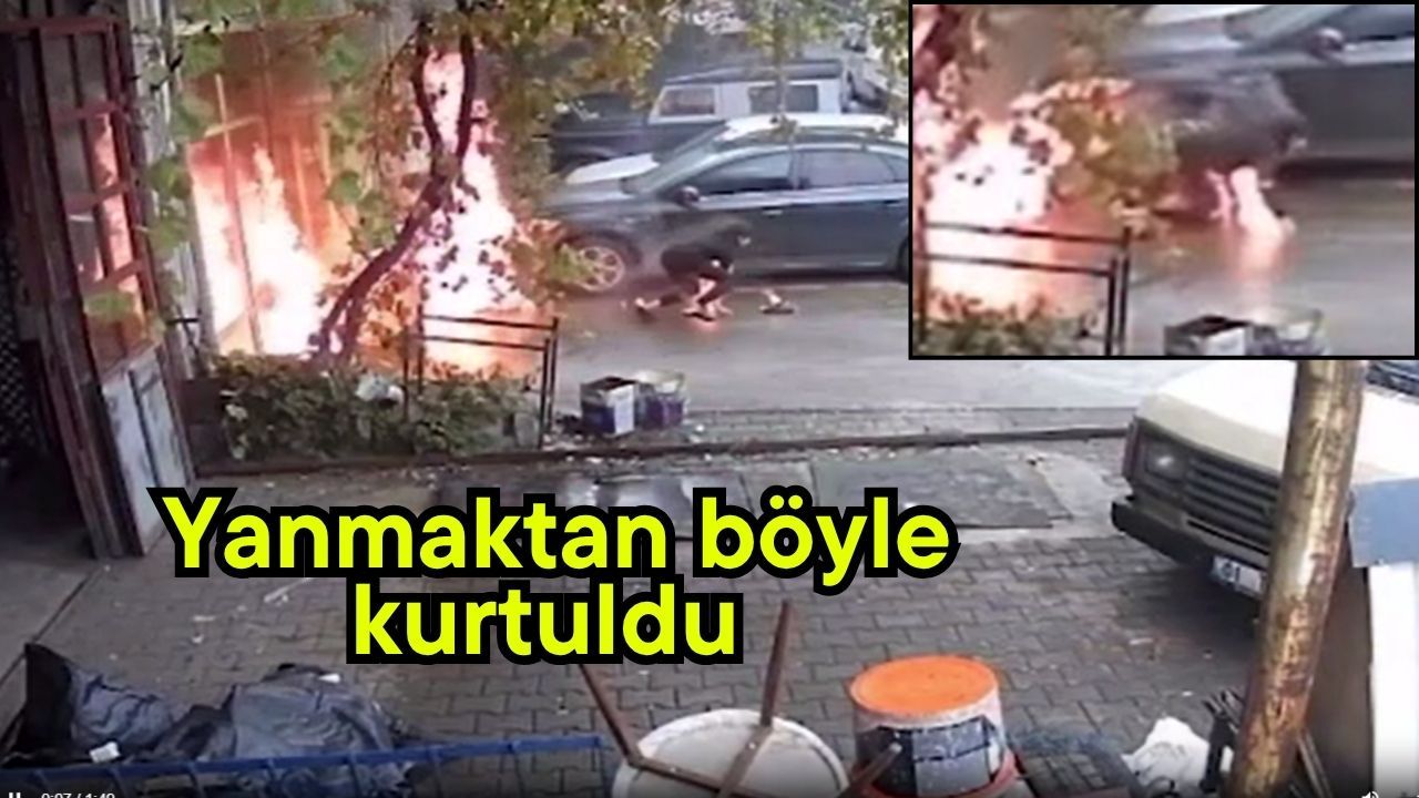Ekiplerin incelemeleri sürerken, yangın anı saniye saniye güvenlik kamerasına yansıdı. Görüntülerde, iş yerinin içinden bir anda alevler yükselmeye başladığı ve bu sırada içeride bulunan iki kişinin koşarak dışarı çıktığı görülüyor. Son anda dışarı çıkabilen S.S. ve Onur G., koşarak kıyafetlerini ve ellerini saran alevleri söndürmeye çalışıyor.