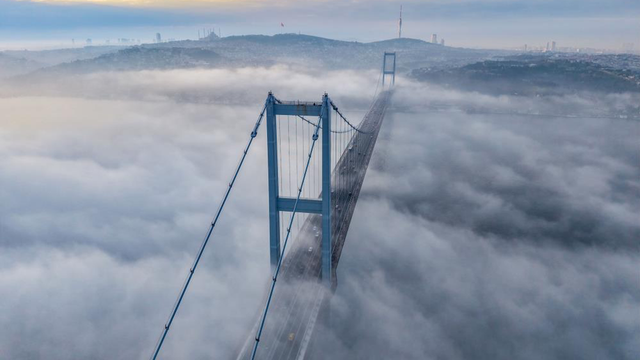 İstanbul’da sabah saatlerinde etkili olan yoğun sis, 15 Temmuz Şehitler Köprüsü üzerinde mest eden görüntüler oluşturdu. Gün doğumuyla birlikte sisin arasından yükselen köprü silueti görenleri mest etti.