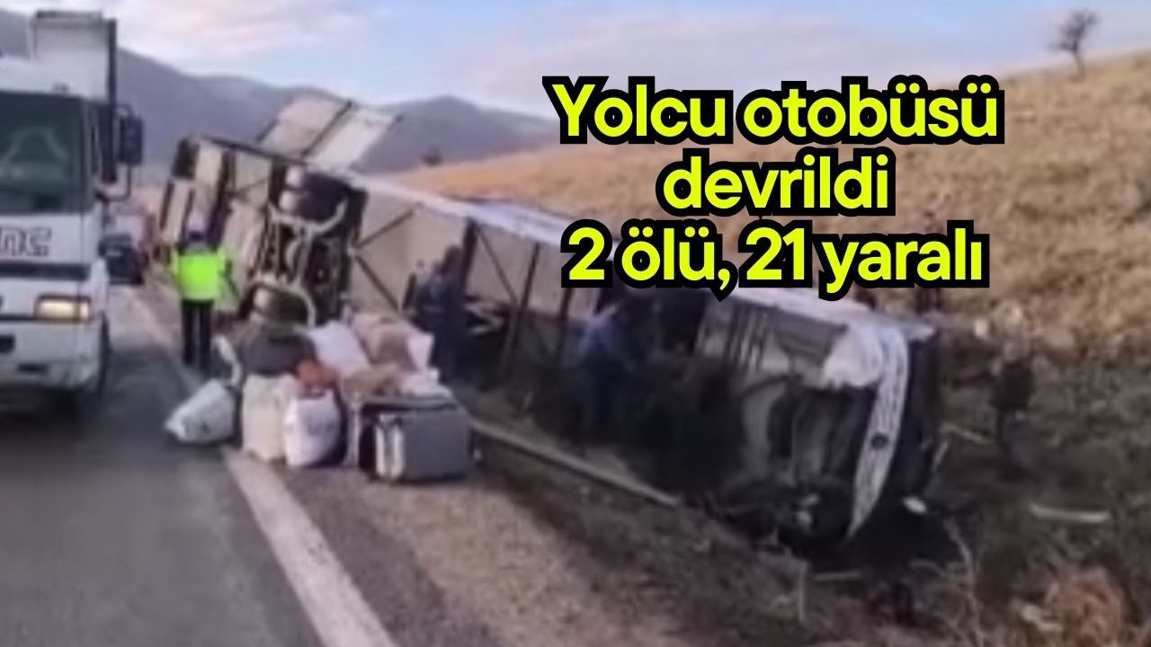 Afyonkarahisar’da kontrolden çıkarak devrilen yolcu otobüsünde ilk belirlemelere göre 2 kişi öldü, 21 kişi yaralandı.