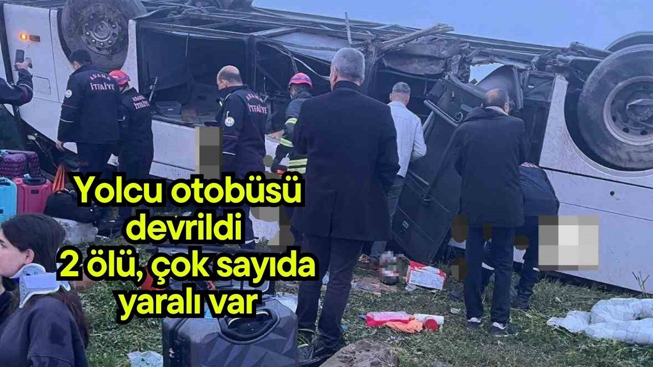 Adana’da kontrolden çıkan yolcu otobüsü refüje çarparak devrildi. Kazada 2 kişi hayatını kaybederken 17 kişi yaralandı.