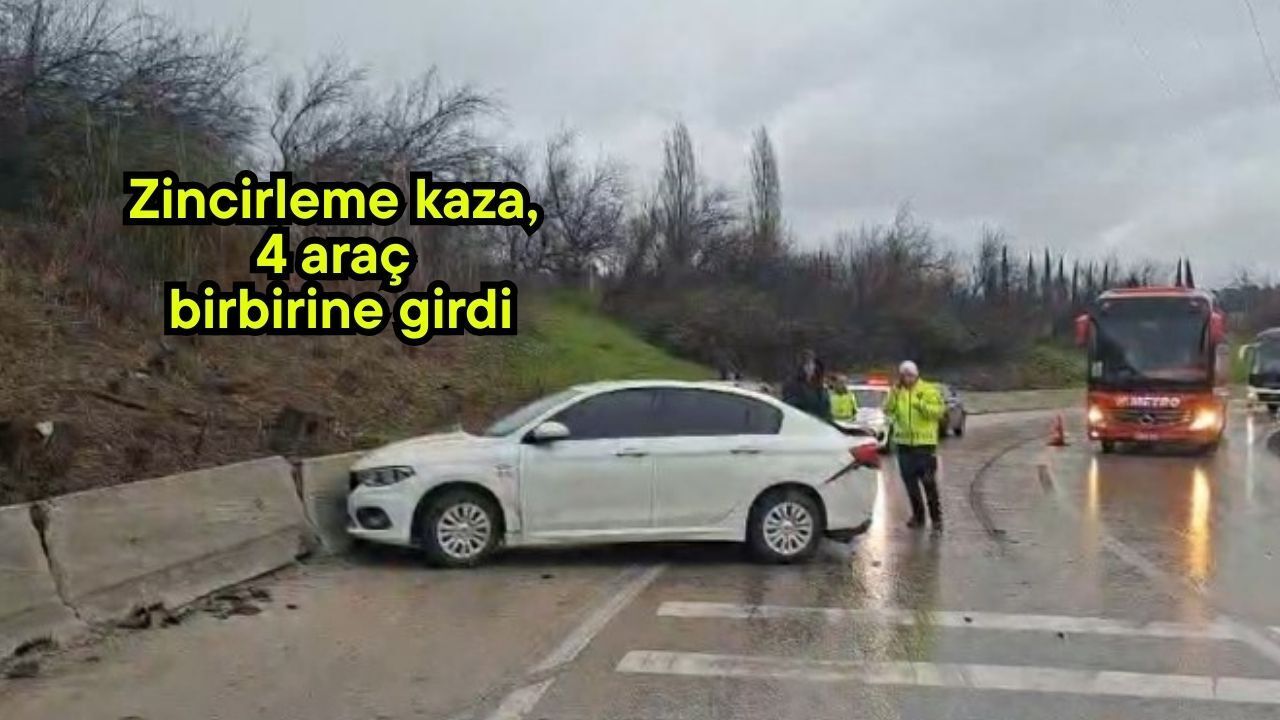 Bursa otobanında yoğun trafik akışı sırasında 4 otomobilin çarpışması sonucu zincirleme kaza meydana geldi. İhbar üzerine olay yerine polis ve sağlık ekipleri sevk edildi. Kazada şans eseri yaralanan olmazken, araçlarda maddi hasar meydana geldi.